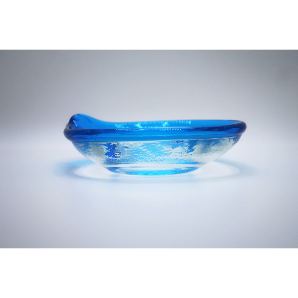 쇼와 빈티지 Blue Art Glass Dish Bowl