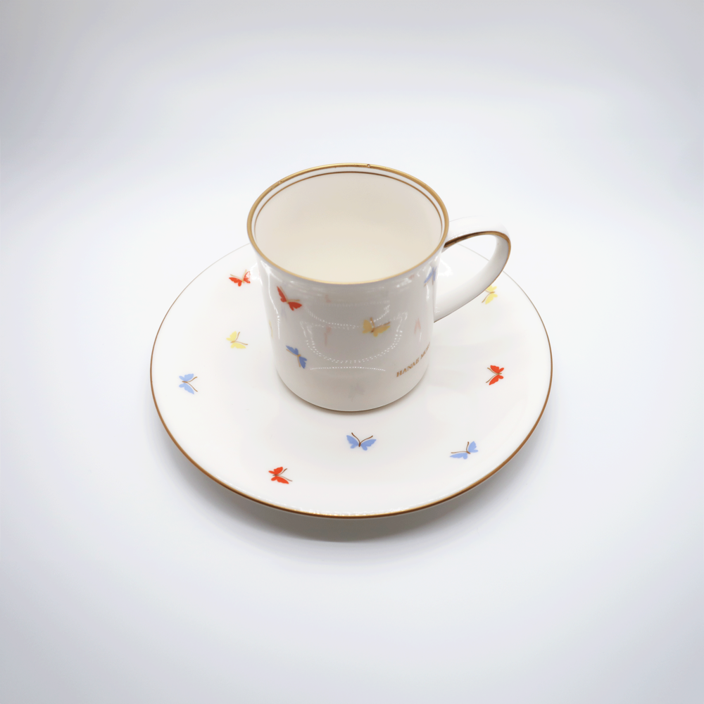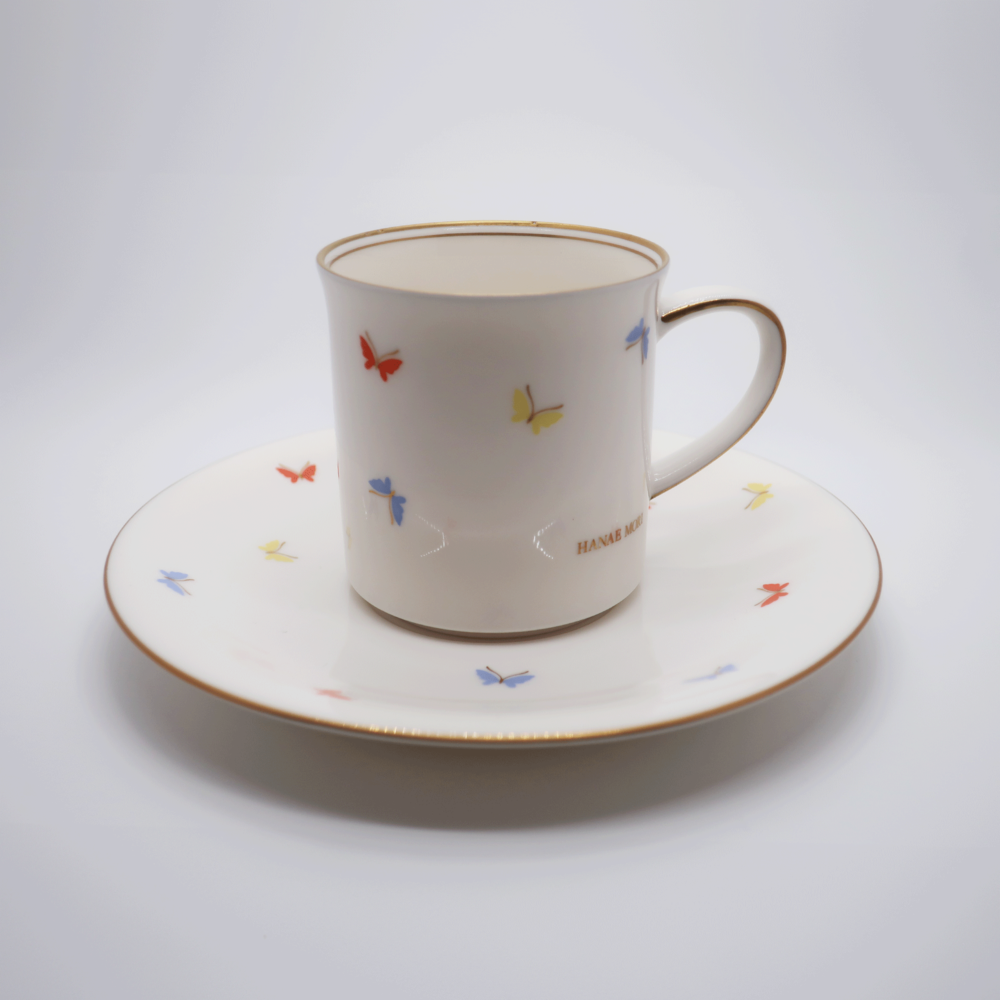 일본의 유명 디자이너 모리 하나에와 야마카 인터내셔널이 제작한 컵 앤 소서. 모리 하나에(1926년 1월 8일 – 2022년 8월 11일)는 일본의 패션 디자이너였습니다. 그녀는 파리와 뉴욕의 런웨이에서 자신의 컬렉션을 선보인 단 두 명의 일본 여성 중 한 명이었고, 프랑스 Fédération française de la couture 의 공식 오뜨 꾸뛰르 디자인 하우스로 인정받은 최초의 아시아 여성이었습니다.