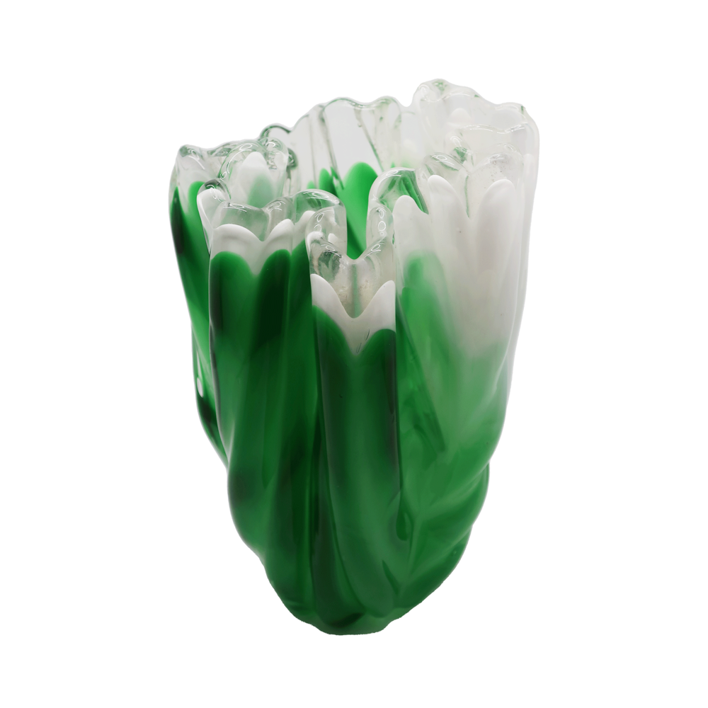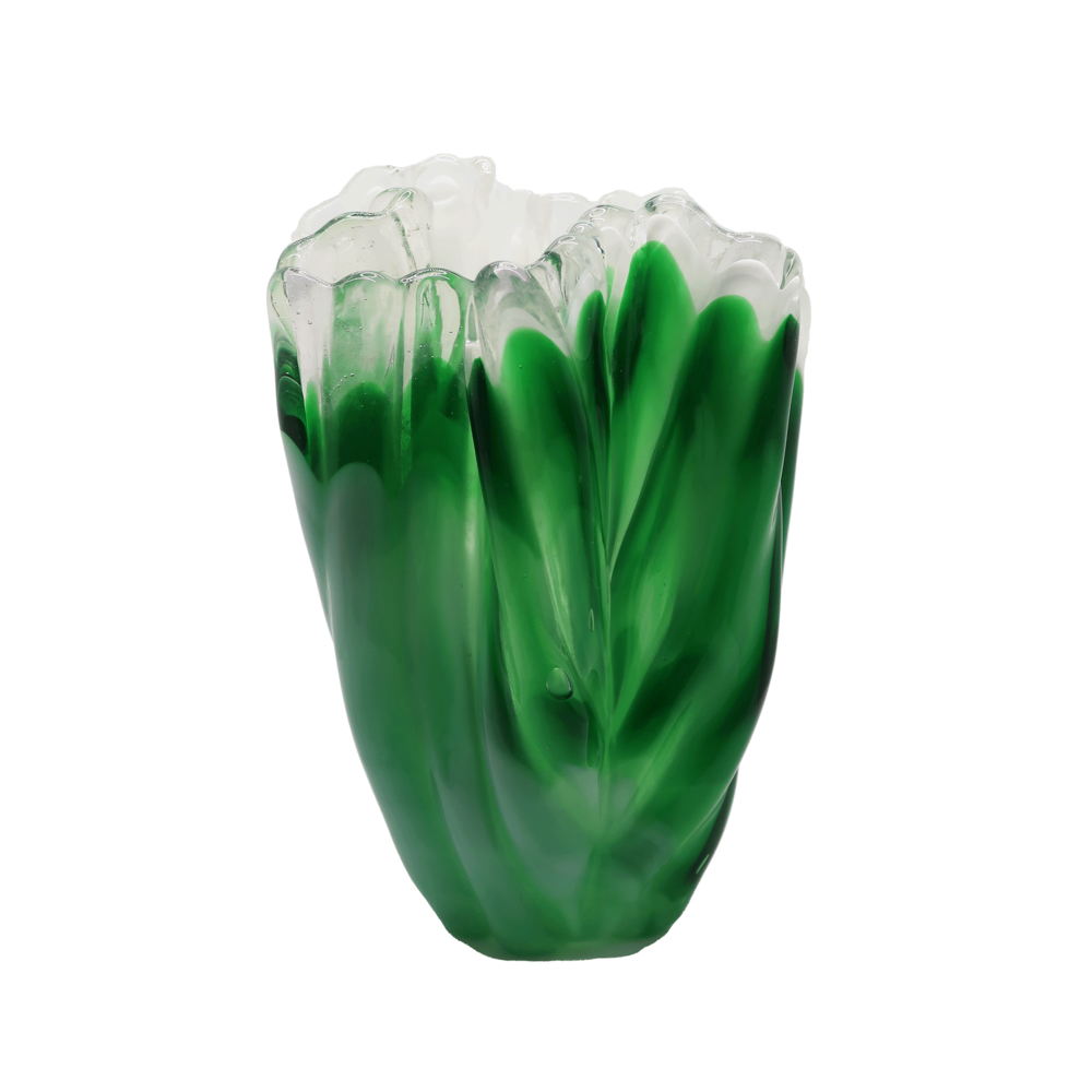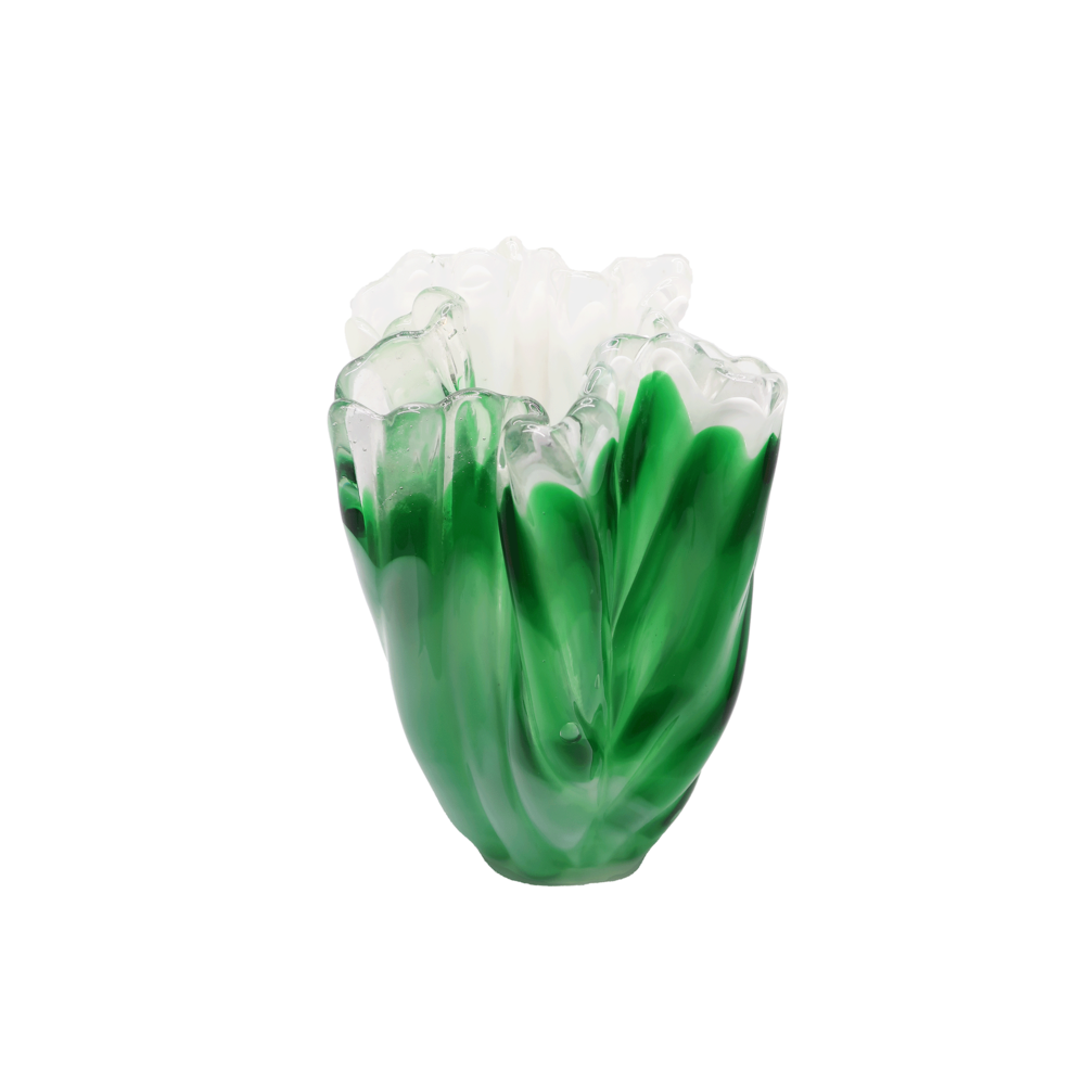 KURATA Craft Glass Flower Vase (Green&White)