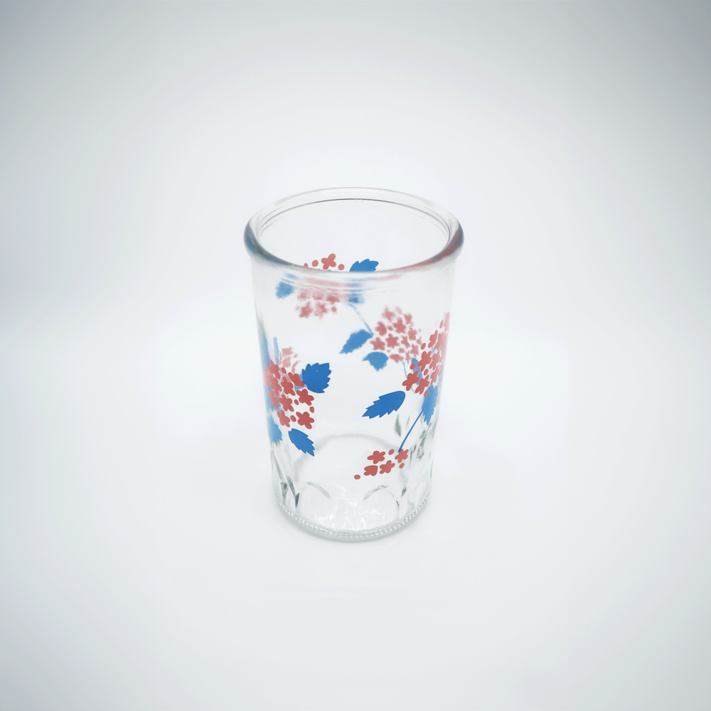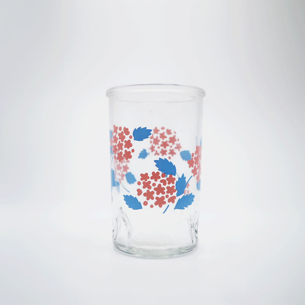 빨간 꽃잎이 그려진 레트로 컵입니다.