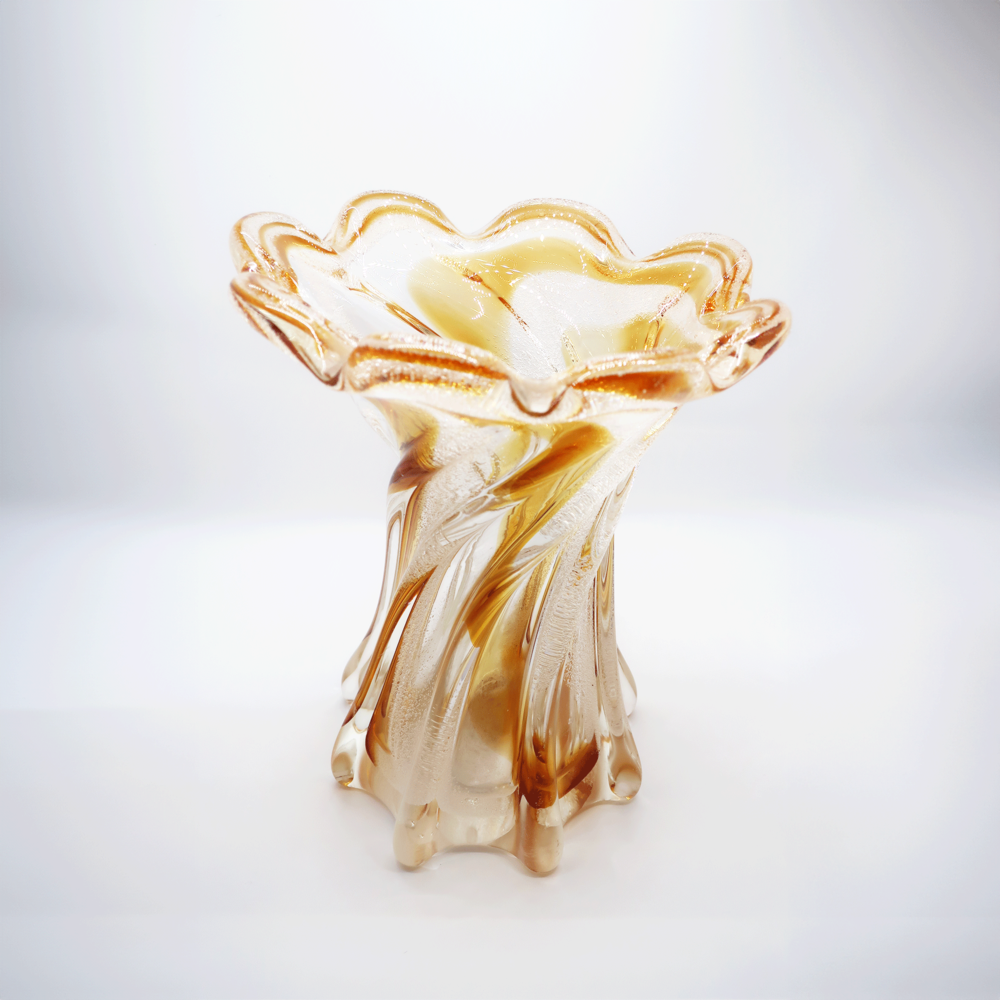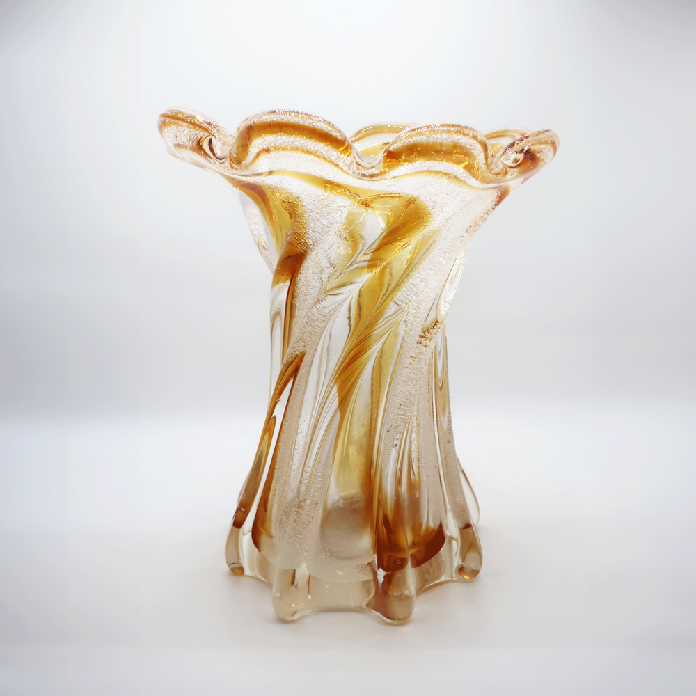 쇼와 빈티지 호박색 아트 유리 꽃병