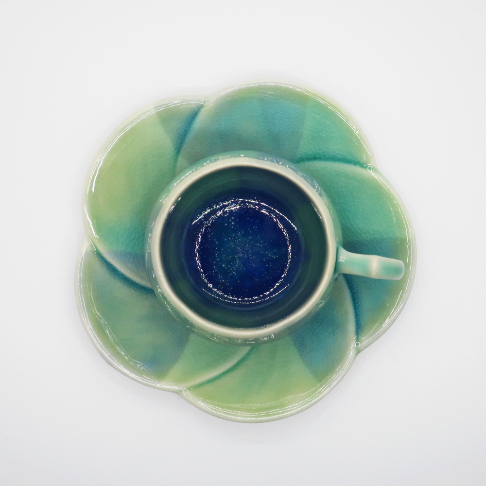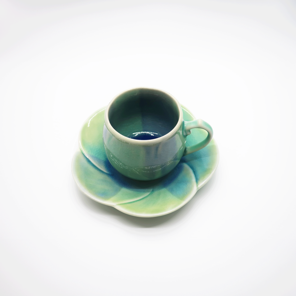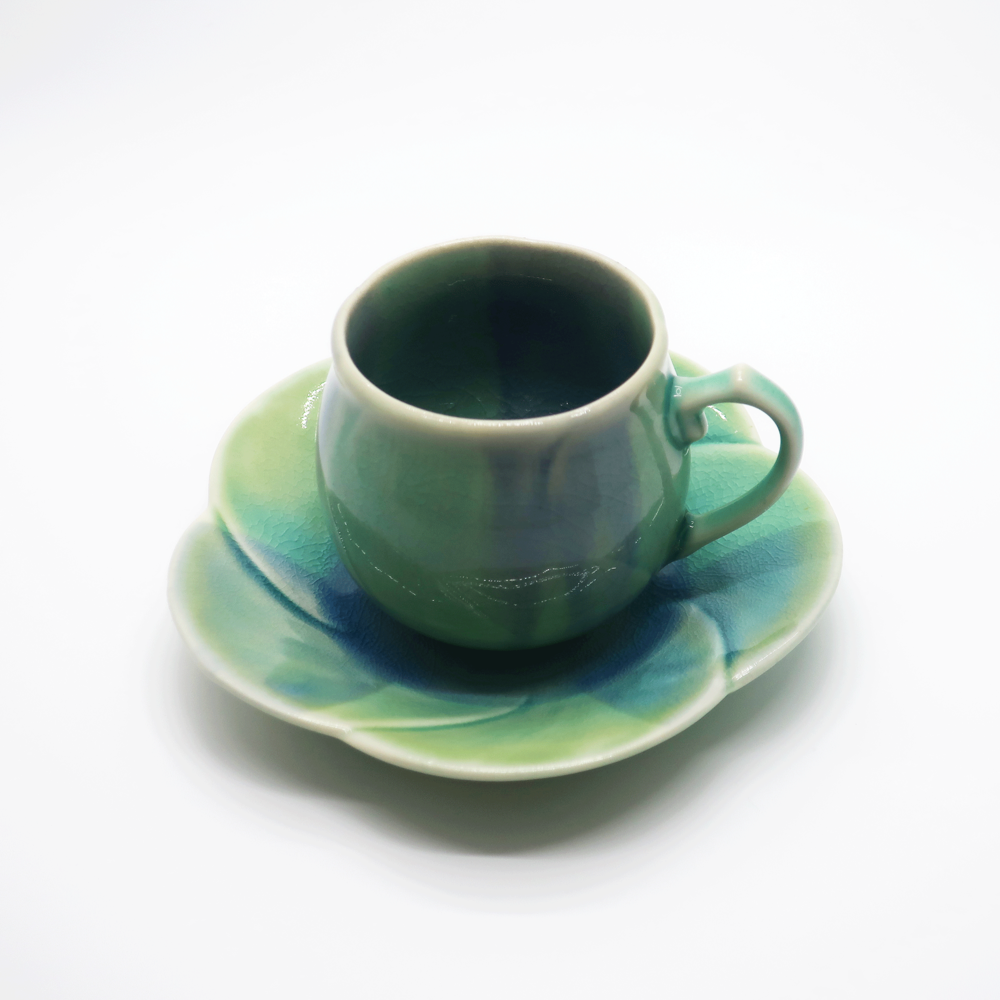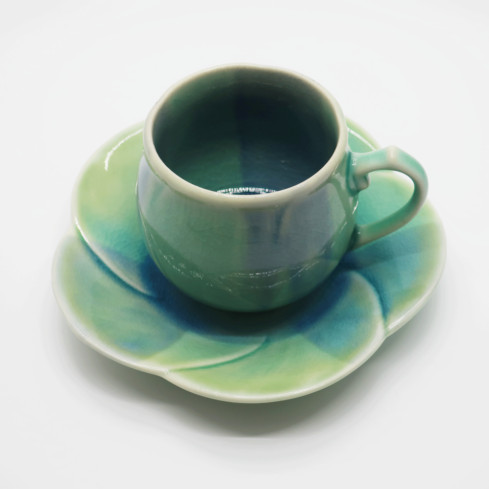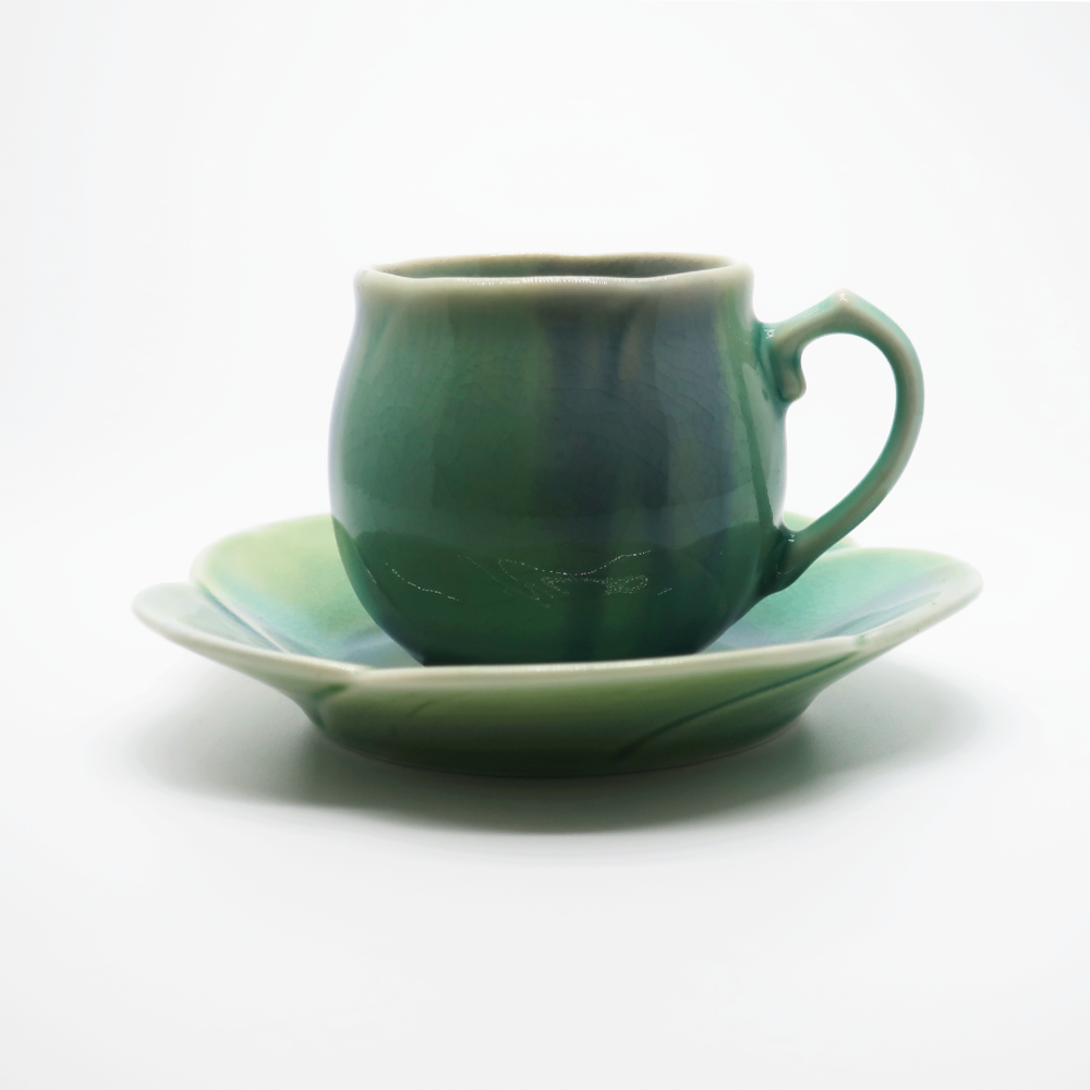 아카츠야키 옥빛 빈티지 찻잔 앤 소서